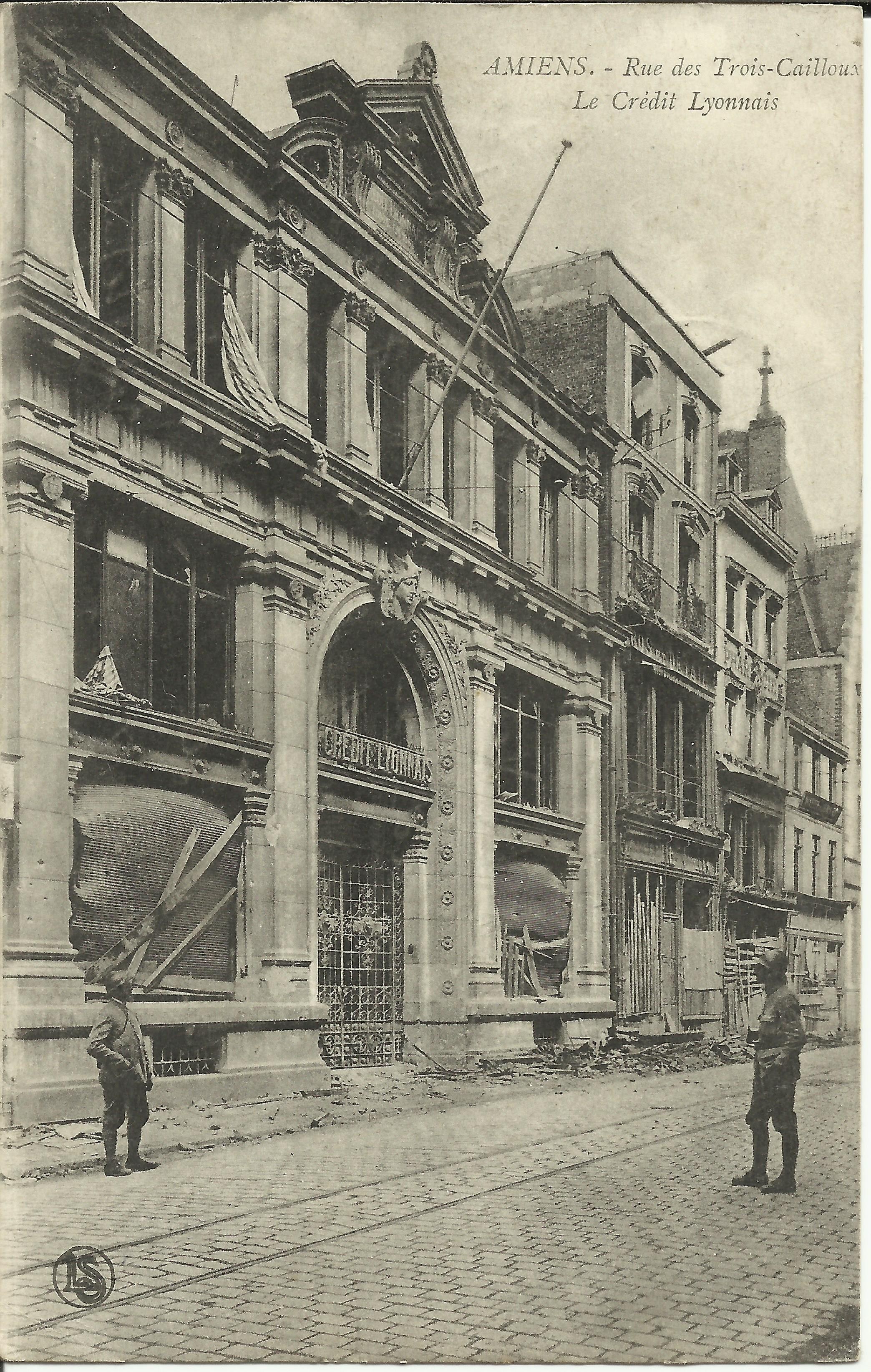 CPA AMIENS, Rue des TroisCailloux, le Crédit Lyonnais, 1919.