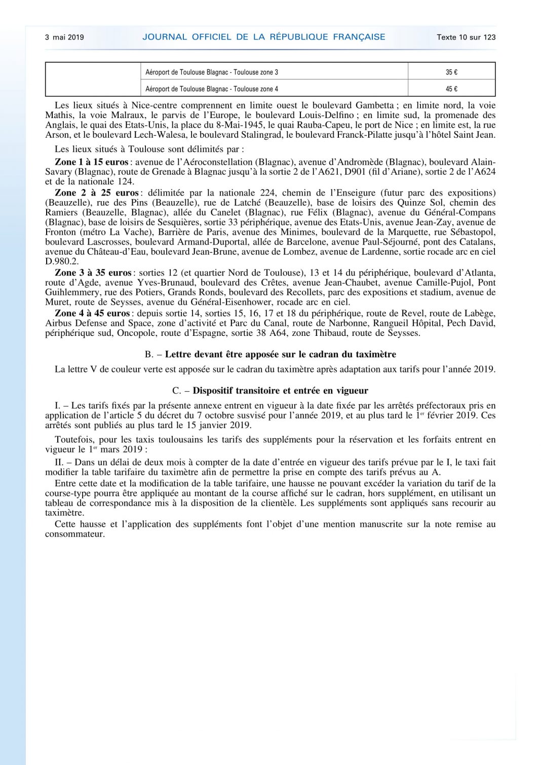 Arrêté du 19 avril 2019 régularisant les tarifs des courses de taxi pour 2019 Union Nationale