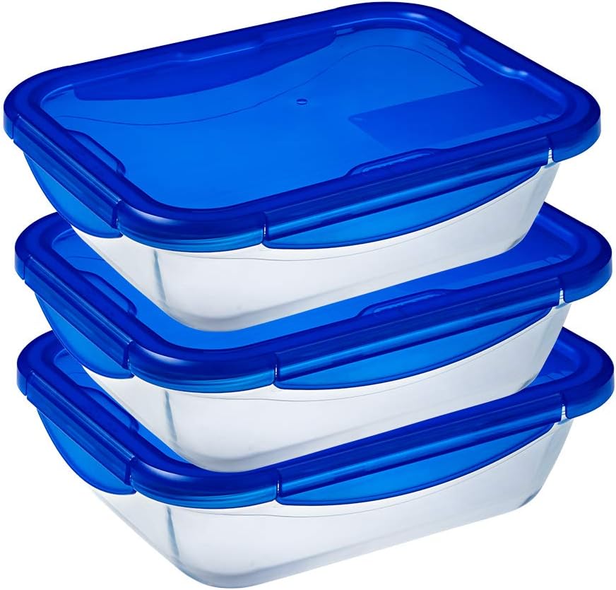 Pyrex® Cook & Go Lot de 3 boîtes de conservation rectangulaires en verre avec couvercles
