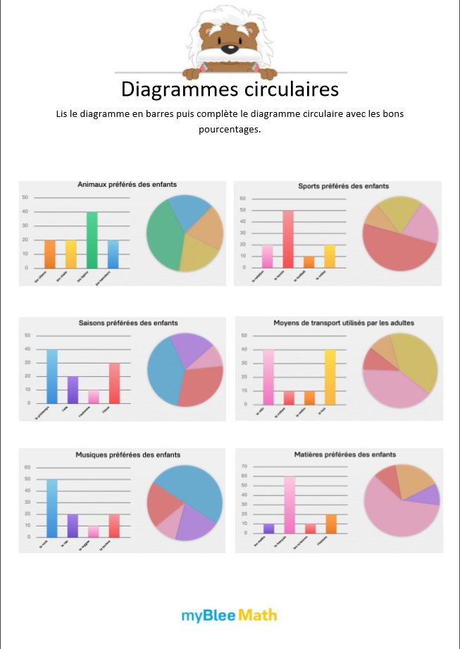 Diagrammes circulaires 15 Complète le diagramme CM2 par myBlee Math jenseigne.fr