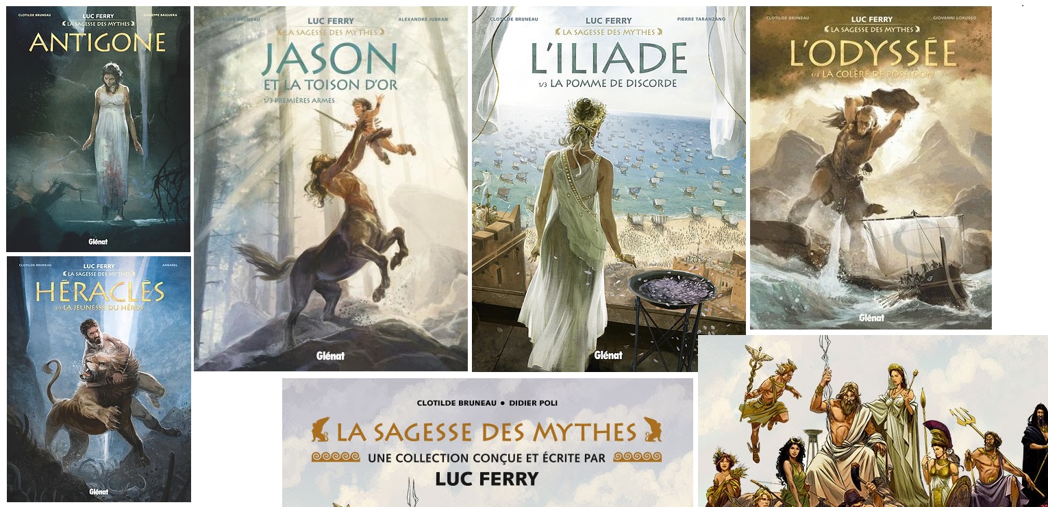 La Sagesse des mythes. La Sagesse des mythes ( lit. 'The Wisdom of Myths') is a series of French comic books that retell famous myths. The series was created by the philosopher Luc Ferry and is published by Glénat Editions since 2016. It was originally exclusively based on Greek mythology but has included other stories since 2019.