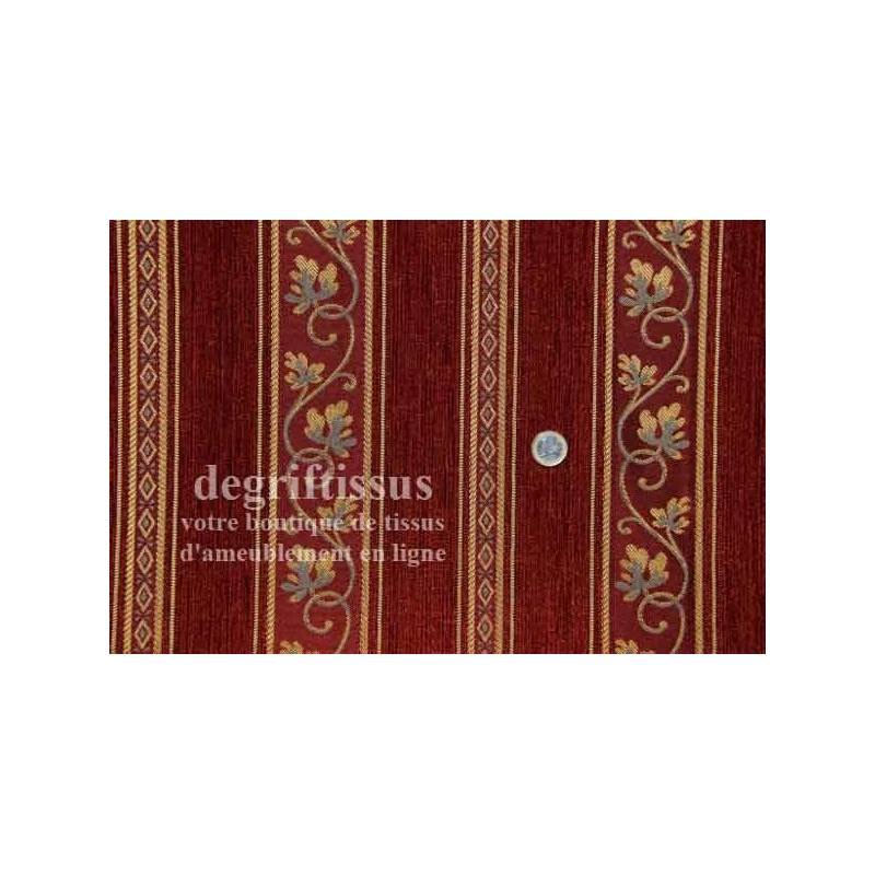 Tissu d'ameublement Tapisserie à rayures brique et fleurettes tissu à rayure