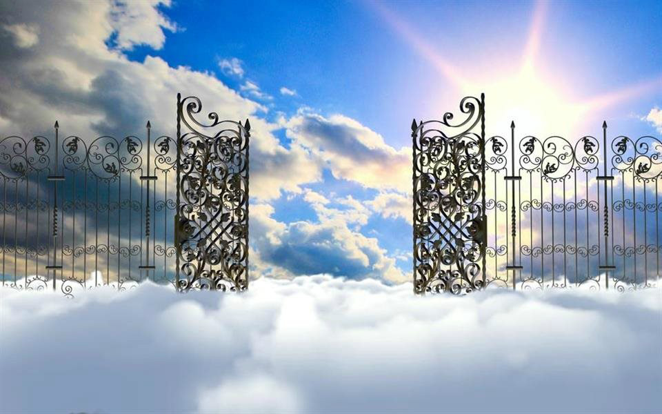 Portes Du Paradis, Entrée à La Ville Merveilleuse, Rencontrant Dieu, Symbole De Vecteur Tiré Par