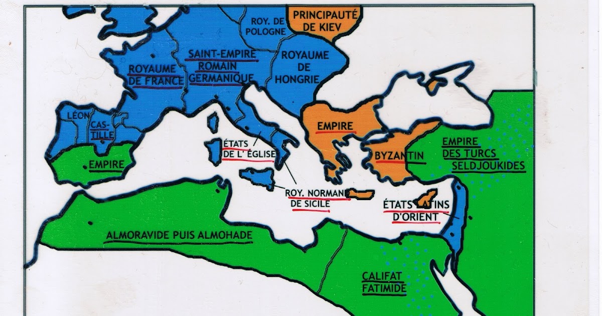 Entre le XIe et le XVe siècle, trois grands ensembles de civilisation sont en. contact autour de la mer Méditerranée : au nord-est l'Empire byzantin, à l'est et. au sud le monde musulman, au nord-ouest la chrétienté occidentale.
