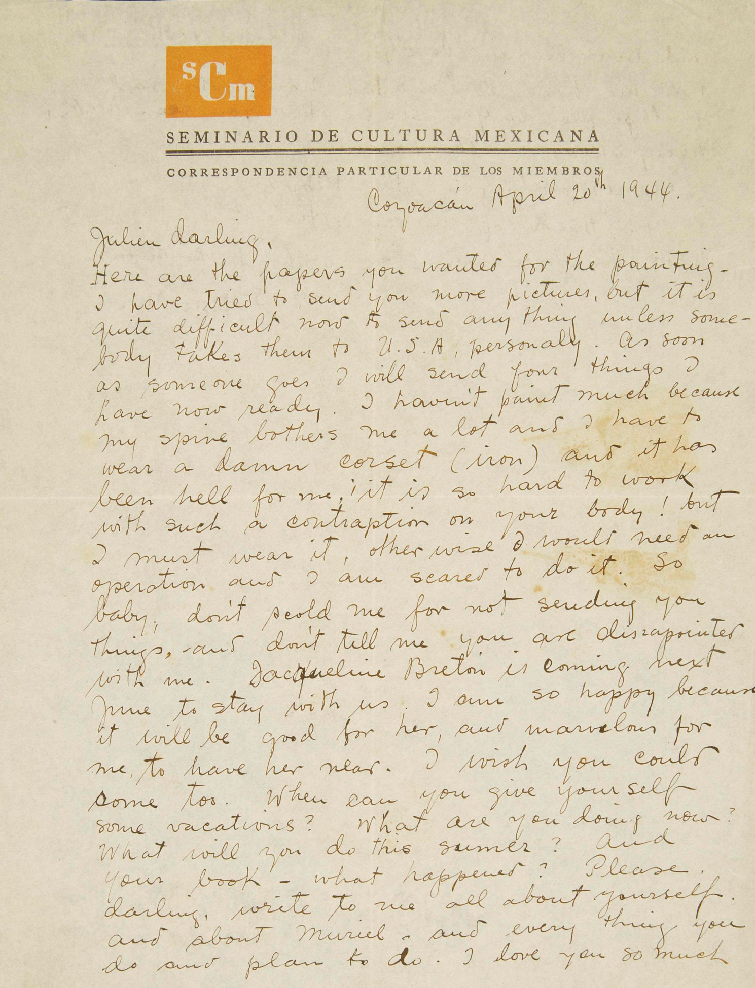 KAHLO, Frida (19071954). Lettre autographe signée à Julien Lévy, en anglais, 2 pages in4 (280