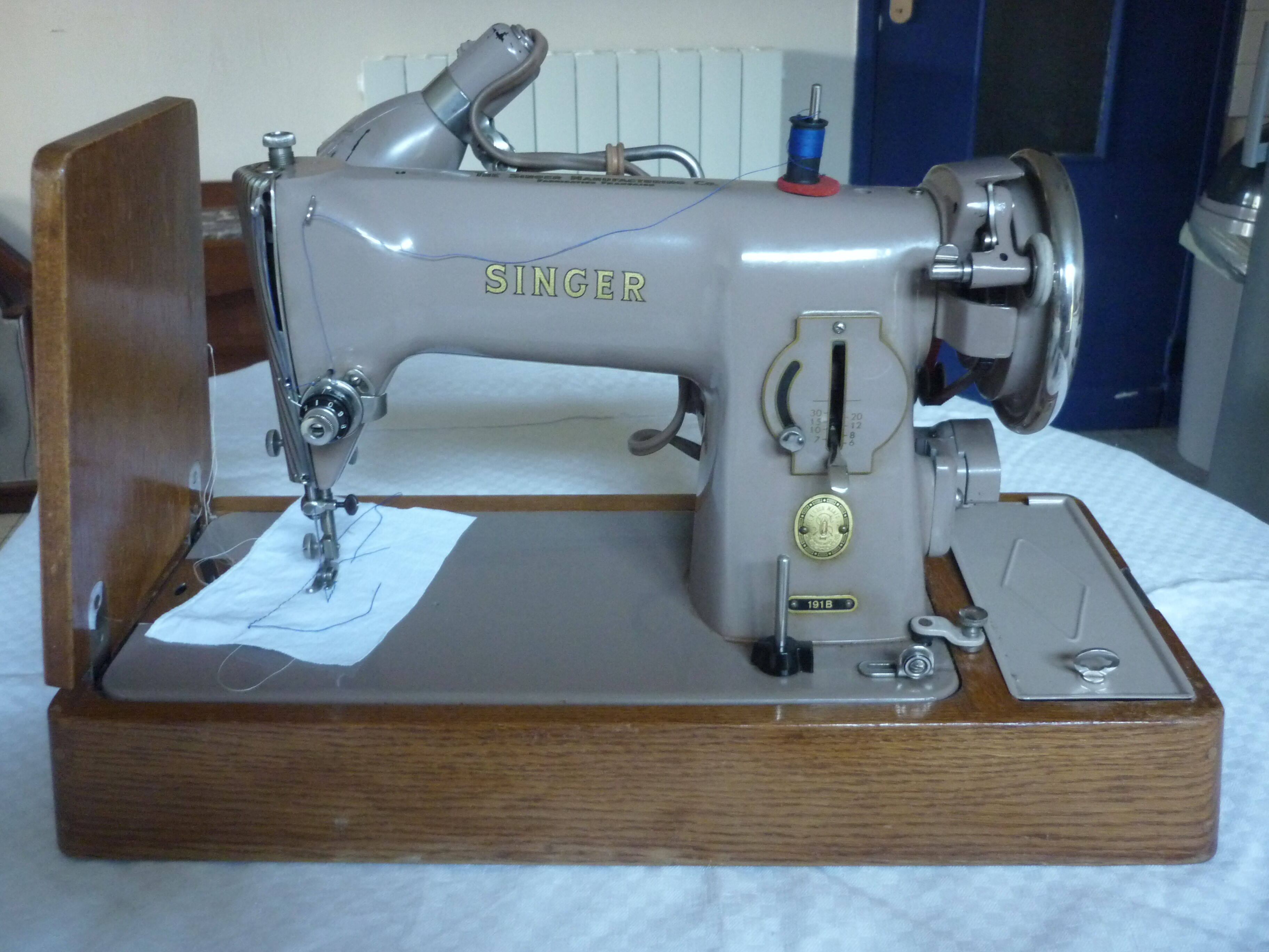 Avantages de la Singer 191B. L'avantage incontestable de cette machine, c'est sa robustesse. Dès les premiers tests on voit que rien ne lui résiste ! Même sur des chutes de simili cuir très épais, le point est superbe, régulier, pas de bourrage de fil ou de points sautés. Aussi bien pour coudre les tissus fins comme le voilage que les.