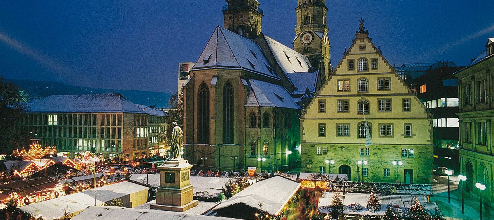 Le Marché de Noël de Stuttgart occupe le centre de la ville et en particulier la Place du Marché (Marktplatz) et Schillerplatz avec plus de 250 chalets en bois offrant artisanat, nourriture et des gâteaux de Noël. Absolument pas manquer les concerts de Noël qui ont lieu dans la cour du Vieux Château (Altes Schloss). Stuttgart lors de la.