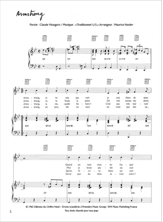 Partition piano Armstrong de Claude Nougaro Piano Voix Guitare, Partition guitare gratuite