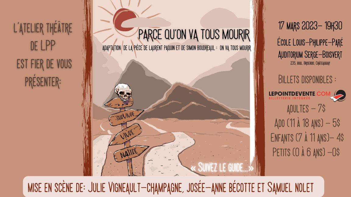 Les ateliers culturels de l'école LouisPhilippeParé présentent Parce qu'on va tous mourir