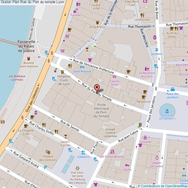 13 Rue du Port du Temple, 69002, Lyon, France. Transports publics. Métro Bellecour. Informations supplémentaires. La rue du Port du temple pars de la place des Jacobins et va en direction du quai St Antoine. Parking des Célestins ou Bellecour ou sur le quai Saint-Antoine.