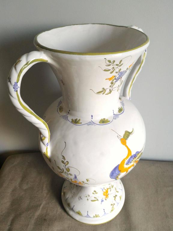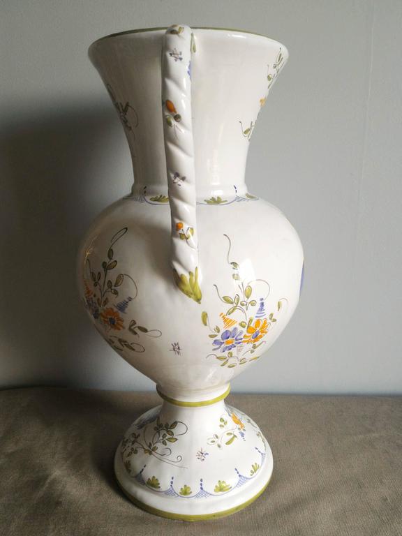 French HandPainted Faience Tall Vase Signed Moustiers For Sale at 1stdibs
